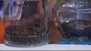 Murid SMA N 1 Dawarblandong melakukan praktek cara membuat obat tifus dari cacing tanah.
