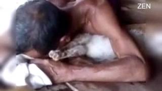 Merasa kehilangan dan merasa bersalah tidak bisa belikan ikan untuk pakan kucing,kakek ini nangis histeris saat kucingnya mati,saking sayangnya kucing terus dicium meski sudah mati.