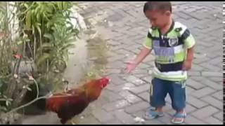 video anak kcel (anjelo) lagi beradu tendang dengan ayam jago dan dimenangkan oleh ayam jago.... belajar karate dulu ya nak biar pertemuan berikutnya si ayam jago kalah...
